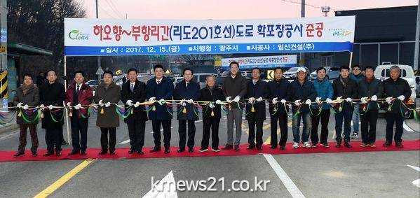 광주시(시장 조억동)는 주민들의 차량통행 불편 등을 해소하기 위해 추진한 ‘하오향~부항리간’(리도 201호선) 도로 확‧포장 공사를 완공했다고 15일 밝혔다.