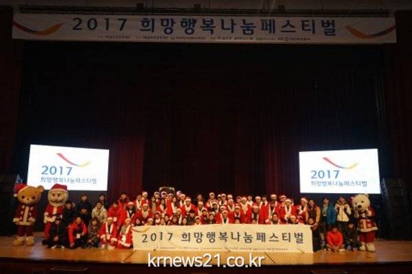 골프존문화재단은 16일 충남대 정심화국제문화회관 정심화홀에서 지역 소외계층어린이, 다문화 가정, 자원봉사자 등 3000여 명을 대상으로 ‘2017 희망행복나눔 페스티벌’을 개최했다.