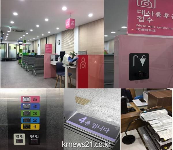 노약자를 위한 확대경 설치, 내부 곳곳에 설치한 지팡이 걸이대, 엘리베이터의 확대된 층표시 버튼 등도 눈이 띈다.