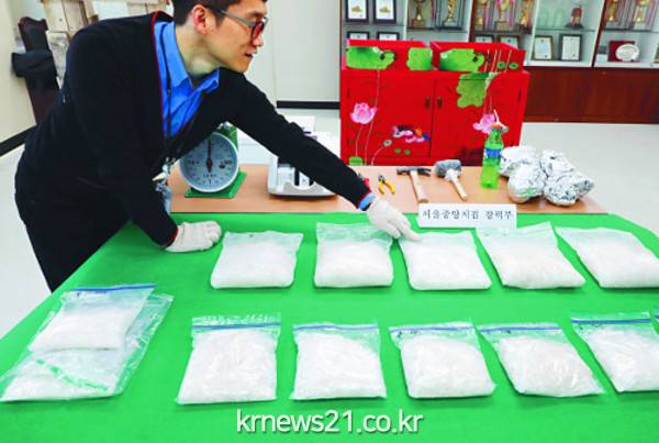 서울본부세관은 지난 9월7일부터 국정원과 공조해 수사에 착수, 그 다음 달 19일 일본 폭력조직 조직원 이모(59)씨 및 일본인 나모(41)씨, 대만 폭력조직원 서모(42)씨를 체포하고 필로폰 8629g을 압수했다. 이튿날인 10월20일 공범인 대만인 황모(47)씨도 추가로 체포했다.