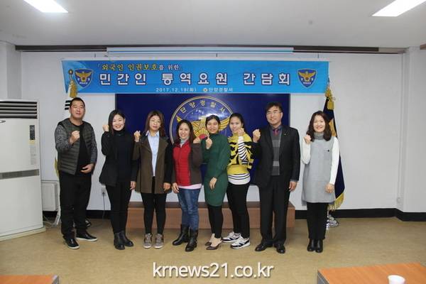 충북 단양경찰서(서장 정영오)는 19일 민간인 통역요원의 역량 강화와 외국인 인권보호를 위한 간담회를 열었다.