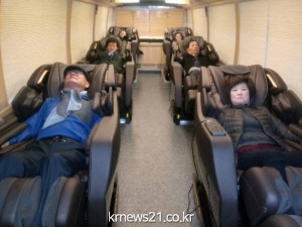 시연회에 참여한 서병춘 대한노인회 부천시 오정구지회장은 “처음에는 안마버스가 낯설어 그냥 체험 삼아 안마의자에 앉았는데 온몸의 근육이 풀리고 긴장이 이완돼 행복감이 몰려왔다”며 “안마가 끝난 후에는 몸이 가뿐해져 앞으로 경로당 회원들에게도 큰 인기를 끌 것으로 보인다”고 말했다.