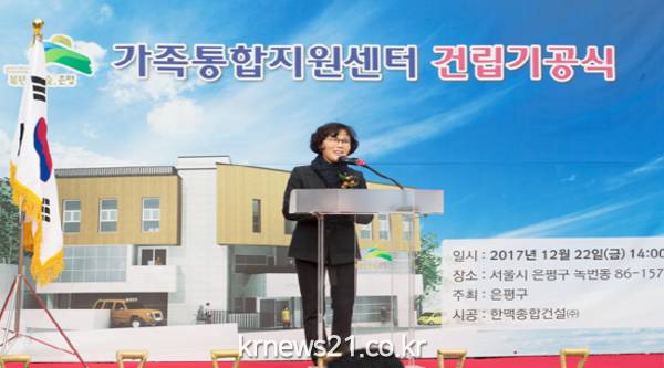 이날 기공식을 가진 가족통합지원센터는 녹번동 86-157에 대지면적 417㎡, 지하1층, 지상3층 연면적 732.23㎡ 규모로 건립된다.