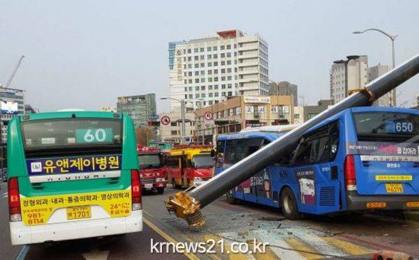 이 사고로 버스에 타고 있던 승객 2명과 인근을 지나던 행인 2명 등 모두 4명이 다쳐 병원으로 이송됐다. 버스 승객 1명은 중상을 입은 것으로 알려졌다. 크레인이 버스 위에 곧바로 떨어져 버스가 크게 찌그러졌다.