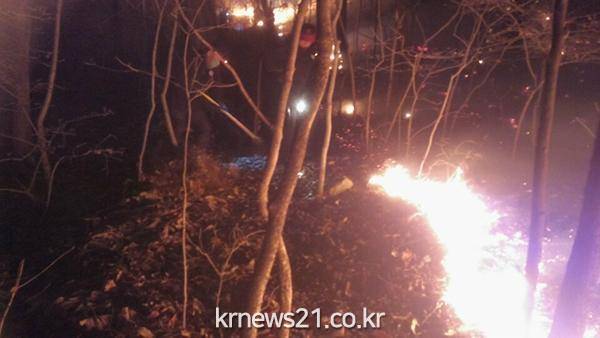 하지만 불이 난 곳이 정상 부근이어서 도보로 진입해야 하는 데다 날이 어두워 헬기를 투입하지 못해 진화에 어려움을 겪었던 것으로 전해졌다.