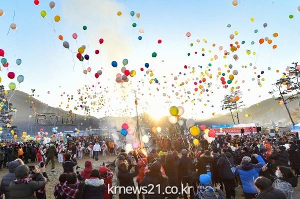또한 연희대 팔산대의 신명나는 사물놀이와 정선아리랑 소리 공연과 함께 축제 참가자들이 모두 함께 참여해 달집태우기와 2018 평창동계올림픽의 성공개최와 참여열기의 하나된 열정을 담은 2018개의 소망풍선을 날려 새해 여명의 하늘이 아름답게 장관을 이루었다.