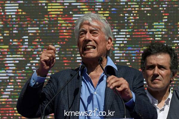 ▲ AFP/Arquivos / JORGE GUERRERO [제공자ⓒ 뉴스21통신. 무단전재-재배포 금지.]마리오 바르가스 료사와 230명 이상의 페루 작가들이 후지 모리의 사면에 반대하는 아시나람 혹은 선언문을 쓰다.