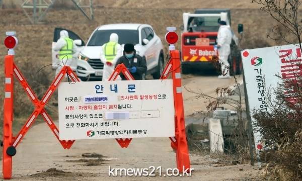 도는 이에 따라 반경 500m 이내 2개 농가 31만2500마리는 이날 중으로, 3㎞ 이내 11개 농가 27만1500마리는 5일까지 예방적 차원에서 살처분할 계획이다.