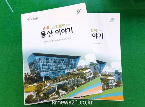 백서는 ‘소통으로 만들어가는 용산 이야기’란 제명을 달고 있으며 지난해 2월 진행된 동 업무보고회 중 구민들이 제출한 건의사항 285건의 처리결과를 일목요연하게 담아냈다.