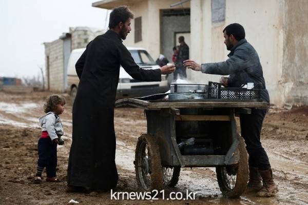 ▲ AFP / Nazeer al-Khatib[제공자ⓒ 뉴스21통신. 무단전재-재배포 금지.]이들리브 지역 출신 시리아인이 북서부 앗자즈(Azaz) 지역에 마련된 캠프에서 음식을 사고 있다. 7일(현지시간) 앗자즈에서는 트럭 폭탄 테러가 발생해 43명이 숨지고 수십명이 다쳤다. 시리아인권관측소(SOHR)는 사망자 43명중 최소 6명이 반군이고 대부분은 민간인이라고 밝혔다.