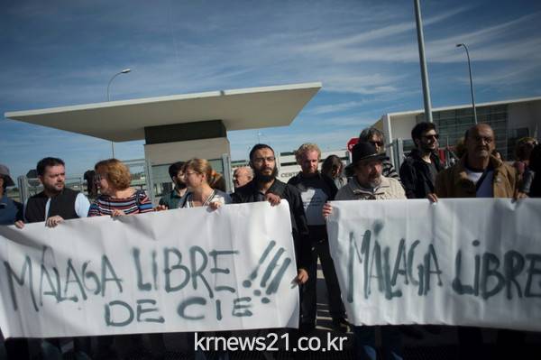 ▲ AFP/Archivos / JORGE GUERRERO [제공자ⓒ 뉴스21통신. 무단전재-재배포 금지.]2017년 11월 26일 배를 타고 스페인으로 비밀리에 도착한 500여명의 이주자들에 억류되어 있는 말라가의 교도소 앞에서 시위를 하는 모습.