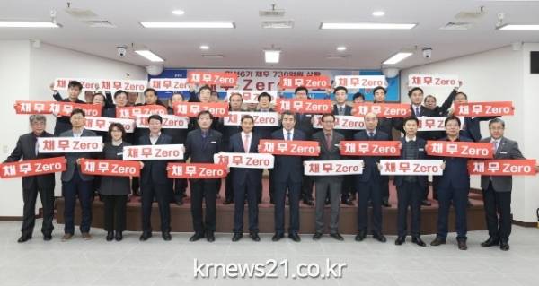 시는 채무 상환계획을 당초 2025년에서 2018년으로 무려 7년을 앞당긴 성과를 축하하기 위해 11일 오전 시청 중회의실에서 김동일 시장과 박상배 보령시의회 의장, 간부공무원 등 30여 명이 참석한 가운데 채무 제로 선포식을 가졌다.