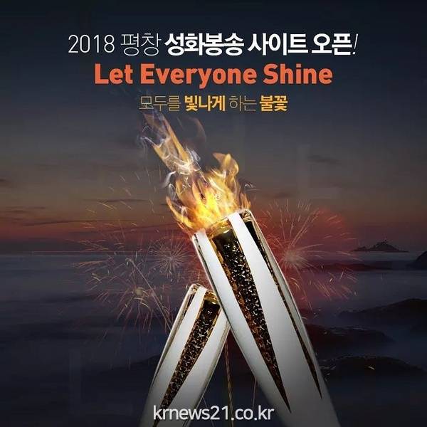 지난해 10월 그리스에서 채화된 성화는 11월 1일부터 인천을 시작으로 오는 2월 9일 평창동계올림픽 개회식장에 점화될 때까지 ‘모두를 빛나게 하는 불꽃(Let Everyone Shine)' 이라는 주제 아래 전국 17개 시·도를 경유하며 총 2,018㎞의 대장정에 올라 있다.