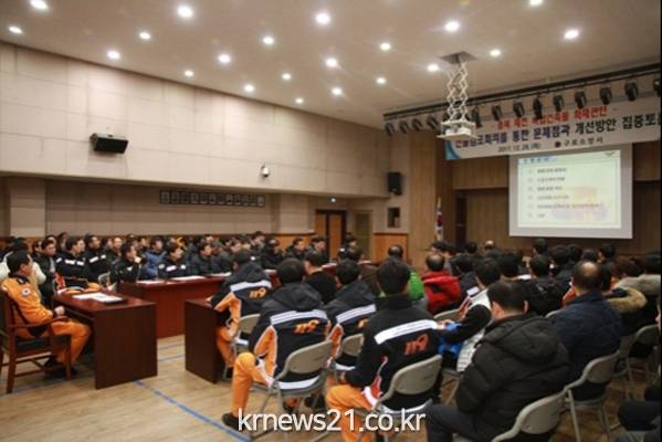 최근에 발생한 충북 제천 스포츠센터에서 발생한 화재에 관하여 직원들의 자유로운 발언을 통하여 화재대응 능력과 대책을 강구하는 등 심도있는 토론이 진행되었다.