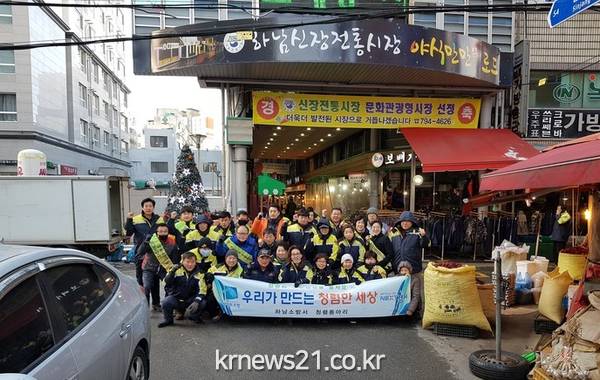 하남소방서(서장 신종훈)는 무술년 새해를 맞아 10일 오후 신장시장 일대에서 소방공무원, 의용소방대 등 40여명이 참여한 가운데 소방차 길 터주기 및 화재예방 캠페인을 실시했다.