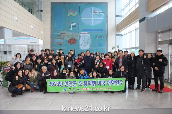 겨울방학을 맞은 신안군 관내 초등학생 10명과 중학생 10명은 신안군과 신안군장학회 주관으로 실시하는 미국 어학연수 프로그램에 참여하기 위해 2차례 설명회를 갖고 1개월 일정으로 미국 애리조나주 투산시(베일) 오코티오 리지 초등학교와 베일아케데미 중학교로 1월 12일(금)출국하였다.