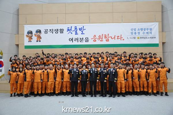 전라남도는 신규 소방공무원 100명의 임용식을 지난 15일 개최했습니다. 이날 신규 임용자들은 ‘도민안전’을 위한 힘찬 출발을 다짐했습니다.