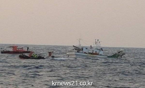 해경은 헬기 1대와 경비함 5척 등 10여 척과 주변 어선 등을 현장에 투입해 사고 해역을 수색하고 있다.