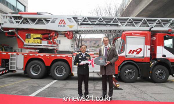 행사는 고가 사다리차 성능 프레젠테이션과 성능 시연, 안전 기원 기념 축사, 차량 인도식, 테이프 컷팅식 등의 순으로 진행됐다. 고가 사다리차는 차량에 대한 최종 점검을 마무리 한 후 오는 19일부터 현장 업무에 배치 될 예정이다.