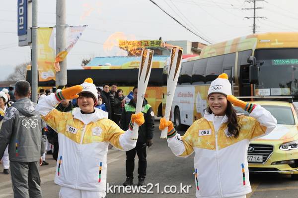 한반도 평화를 기원하는 의미를 담아 2018평창동계올림픽을 환하게 빛낼 성화가 21일 철원에 입성, 강원도 봉송을 시작했다.