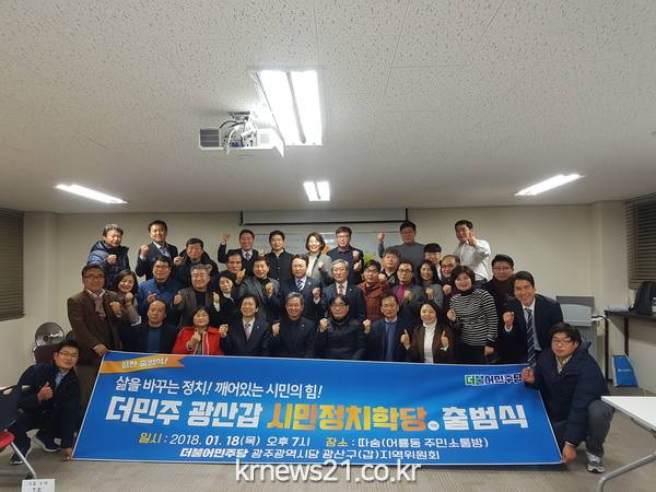 이날 더불어민주당 광주광역시당 광산구(갑)지역위원회(이용빈 위원장)는 어룡동 주민소통방 “따숨”에서 <삶을 바꾸는 정치! 깨어 있는 시민의 힘!>이라는 슬로건으로 당원 정치학당을 출범식 하였다.