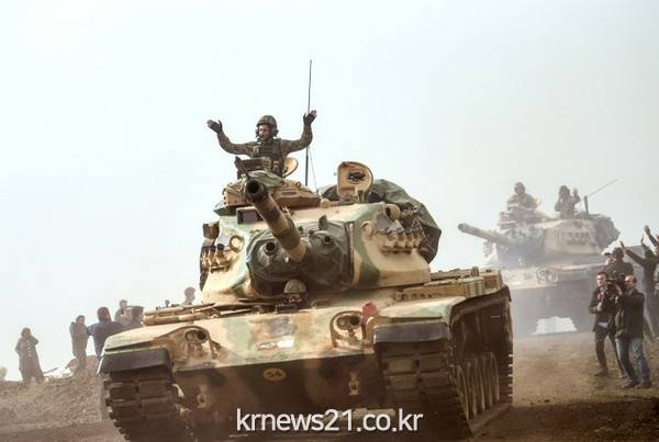 앙카라가 지원하는 시리아 반란군과 터키 탱크와 관련된 주요 지상 침범을 뒷받침하는 터키 전 투기와 포병 작전은 아프리 인근에서 인민 보호 단원 민병대를 축출하는 것을 목표로하고있다.