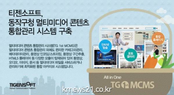 멀티미디어 콘텐츠 통합관리 및 통합메시지 전송 솔루션 개발 전문기업 ㈜티젠소프트(대표 고훈호)가 ‘동작구청 홈페이지 전면 개편 구축 사업’에 멀티미디어 콘텐츠 통합관리시스템(TG 1st MCMS)을 성공적으로 구축했다고 25일 밝혔다.