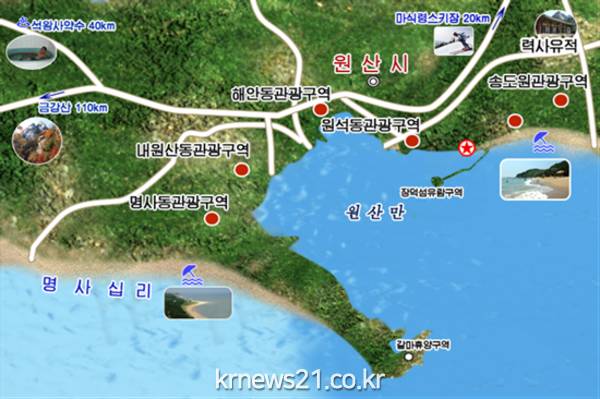 통신은 "현대적인 갈마비행장이 자리잡고있는 이곳에 원산갈마해안관광지구가 꾸려지면 국내외 관광객들의 관광수요를 원만히 충족시킬 수 있을 뿐 아니라 여러 관광지와 원산-금강산 국제관광지대를 연결하는 중간체류 장소로서 아주 이상적"이라면서 "원산갈마지구는 해안관광지구로 유망한 곳"이라고 소개했다.
