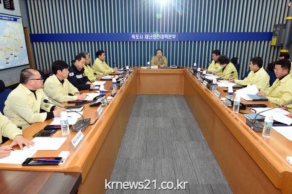 ▲ 목포시 민관 합동대책회의26일 오전 경남 밀양의 세종병원 화재로 인해 인명 피해가 발생함에 따라 목포시는 같은날 오후 재난상황실에서 박홍률 목포시장을 비롯해 재난 관련 부서장과 목포소방서, 자율방재단, 의용소방대 등 유관 기관․단체 관계자들이 참석한 가운데 민관 합동 긴급 대책회의를 갖고 다중이용시설의 소방 시설을 긴급 점검하기로 결정했다.