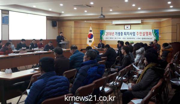 군 보건소는 지난 26일, 대산면사무소에서 마을이장, 부녀회장, 주민, 질병관리본부와 군 보건소 관계자 등 70여 명이 참석한 가운데 ‘기생충 퇴치사업 주민설명회’를 개최했다.