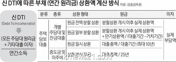 신DTI는 두번째 주택담보대출을 낼 때 제약 기준이 되는 부채상환금액에 기존 대출 원금과 기타대출 이자를 새로 산입해 대출 한도를 줄이는 것으로 다주택자 대출을 억제하기 위한 조치다. 빚 내기는 더 어려워지고 대출상환 부담은 늘어난다는 얘기다.