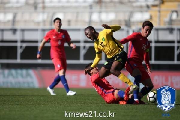 한국이 자메이카와의 평가전에서 무승부를 기록했다.