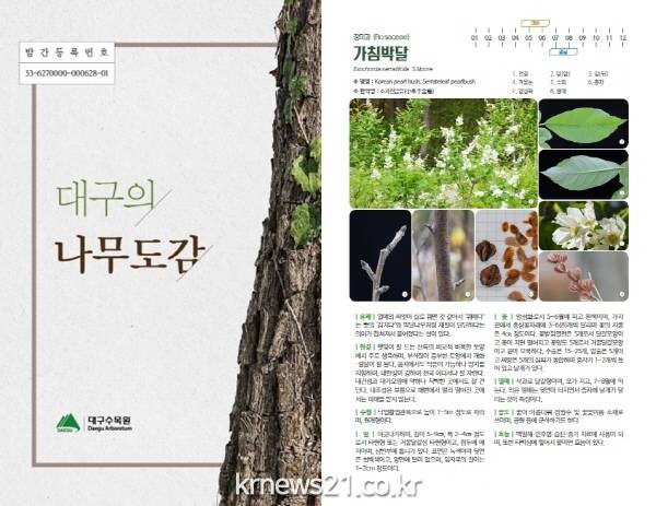 쓰레기 매립장에서 향토 식물자원 보전과 자연생태 체험 그리고 자연학습의 장으로서 기능을 충실히 수행하고 있는 대구수목원은 대구지역에서 자라고 있는 나무들을 소개하는『대구의 나무도감』을 발간했다.