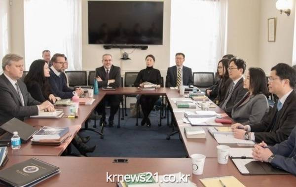 우리가 미국보다 협상에서 수세에 몰렸다는 지적에 대해서는 "우리는 그렇게 (수세적으로) 협상 안 한다"면서 "제가 항상 지시하는 것은 공세적으로 떳떳하게 나아가라는 것"이라고 강조했다.