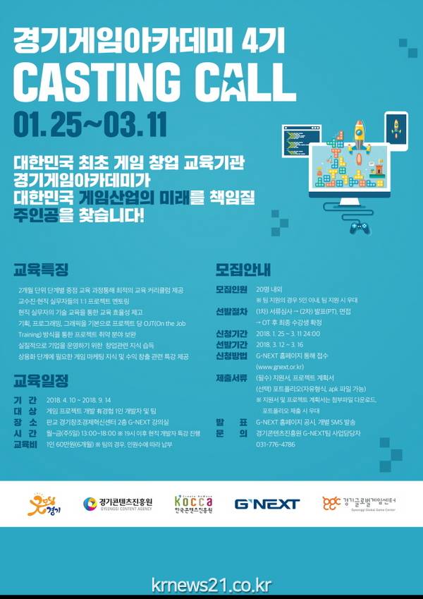 경기도는 ‘경기게임아카데미 스타트업과정’ 4기 수강생을 3월 11일까지 모집한다.