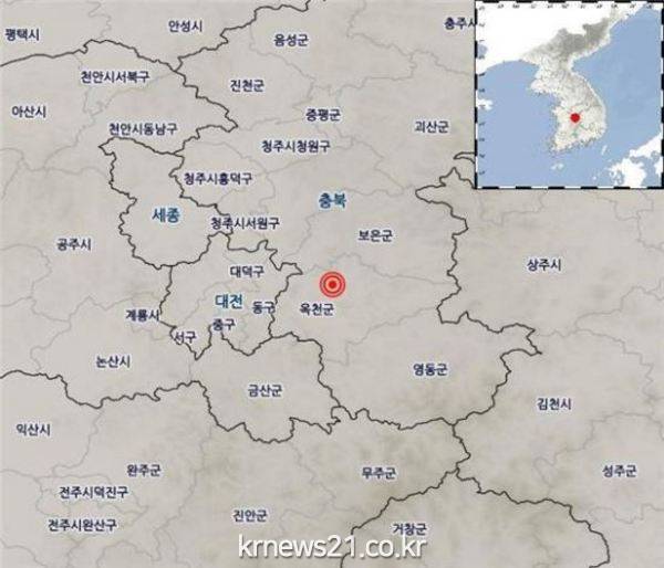 어제(4일) 충북 옥천에서 규모 2.8의 지진이 발생하였다.