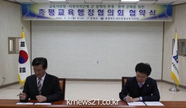 괴산증평교육지원청은 지방자치단체와 교육관련 정보를 공유하고 소통함으로써 유기적인 협조 체계를 구축하여 교육발전을 도모하고자 홍성열 증평군수와 5일에 증평교육행정협의회를 괴산증평교육지원청에서 체결하였다. 괴산증평교육지원청은 지난달 29일에 나용찬 괴산군수와 괴산교육행정협의회를 체결한 바 있다.