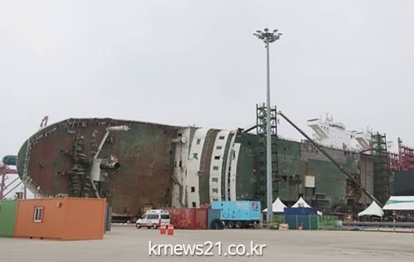 바로 세우는 직립(直立) 작업을 위한 사전 작업으로 오는 21일 부두와 직각으로 세월호 선체를 이동시킨다.