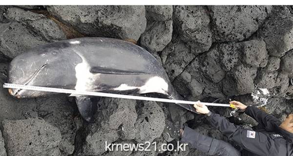 제주 해안에서 쇠돌고래로 추정되는 동물 사체가 발견됐다.