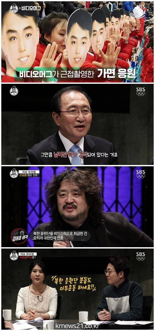 2월 22일 방송된 SBS '김어준의 블랙하우스'에서는 북한 응원단을 취재하는 국내 언론들의 태도에 대해 이야기를 나눴다.