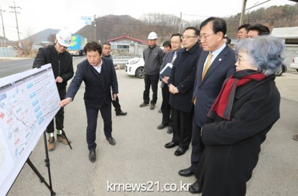 한편 괴산∼음성 도로건설공사는 총 사업비 1036억 원을 투입해 괴산군 소수면 아성리에서 음성군 원남면 하노리까지 9.7㎞ 구간을 4차선으로 확장하는 공사다. 이 공사는 오는 2021년 개통 예정이다.