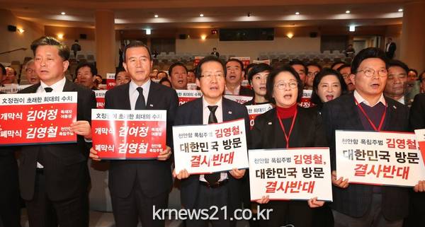 전날 ‘김영철 방한 저지 투쟁위원회’를 출범시킨 한국당은 이날 오후 서울 청계광장에서 현장 의원총회를 진행할 예정이다.