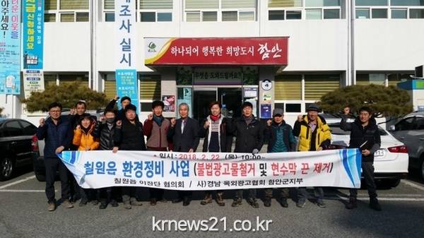 다가오는 봄을 맞아 깨끗하고 청결한 가로환경을 조성하고자 실시된 이날 행사에는 칠원읍이 장단협의와 경남 옥외광고협회 함안군지부 회원, 공무원 등 30여 명이 참여했으며, 안전사고 방지를 위해 하이카 3대도 동원됐다.
