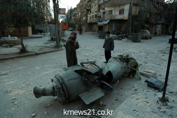 ▲ AFP / Archive / HAMZA AL-AJWEH[제공자ⓒ 뉴스21통신. 무단전재-재배포 금지.]유엔 안전보장이사회의 휴전 결의안에도 불구하고 시리아 다마스쿠스 외곽의 반군 장악지역 동(東)구타에 정부군의 공습과 포격이 이어지고 있다. 25일(현지시각) 공습으로 인해 어린이 3명 포함 최소 14명이 사망했다고 시리아인권관측소(SOHR)는 전했다.
