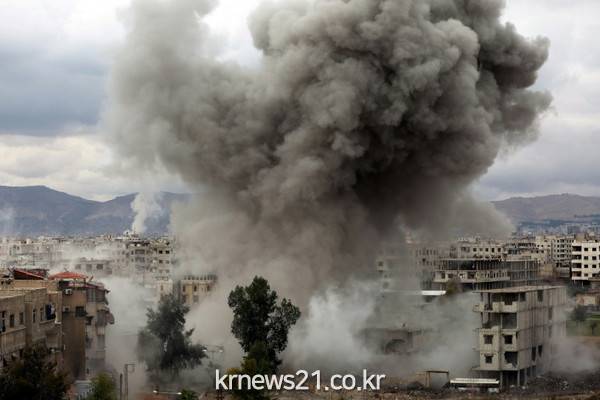 ▲ AFP / AMER ALMOHIBANY [제공자ⓒ 뉴스21통신. 무단전재-재배포 금지.]러시아는 시리아 동부 가오타에서 월요일 몇시간 동안 치명적인 공습이 있은 후 폭격이 완화된 반군이 장악한 소수 민족 거주지에서의 대학살을 중지시키라는 압력에 굴복하며 일일"인도 주의적 중단"을 선언했다.