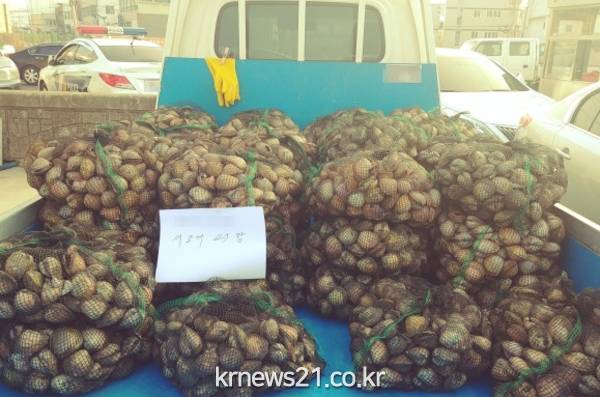 통영해양경찰서(서장 신동삼)는 지난 27일 새벽 6시경 고성군 하일면 방파제에서 야간에 불법으로 형망어구를 이용하여 새조개를 채취한 어선2척과 이를 불법유통하려던 운반책 등 총 5명을 검거했다고 밝혔다.