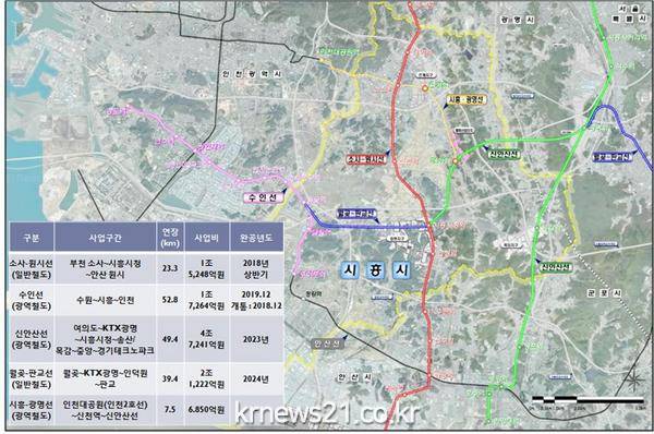 수도권 서남부 숙원사업이었던 소사~원시선 전철이 올해 6월 개통을 앞두고 있으며 수인선 전구간도 연말에 개통될 예정이다. 또한 여의도와 서울역을 연계하는 신안산선이 조기 착공되고 월곶~판교선이 확정됨에 따라 시흥시 전역이 서울로의 접근성이 크게 개선되어 그 어느 때보다 기대감이 높아지고 있다.