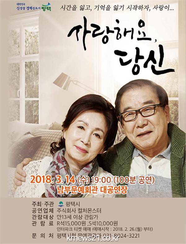 평택시(시장 공재광)는 수준 높은 문화예술에 대한 시민들의 욕구충족을 위하여 3월 14일 오후7시 남부문예회관 대 공연장에서 ‘연극<</span>사랑해요. 당신>’을 선보인다.