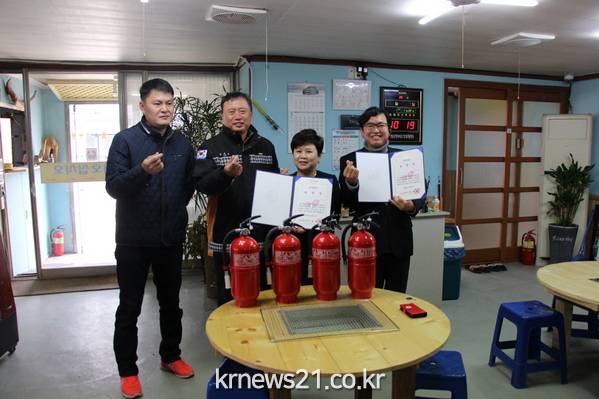 소방서는 침착하게 화재에 대응하여 재산피해를 절감하는 데 큰 공을 세운 지역 주민 3명에게 표창장을 수여하고 소화기를 2배로 전달했다.