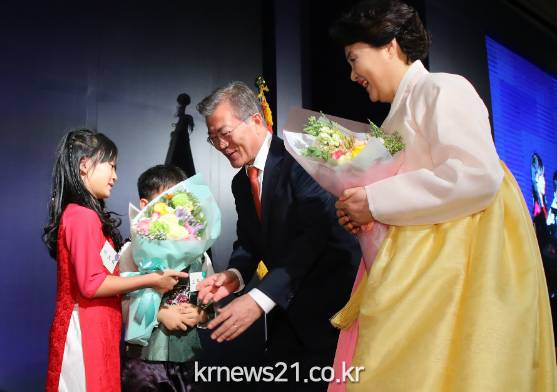문 대통령은 “저는 걱정하지 않는다. 민주주의를 지켜낸 국민들이 함께하고 있다”며 “여러분이 ‘내가 바로 한국인이야’, 자긍심을 가지고 사실 수 있도록 자랑스러운 대한민국을 만들어내겠다”고 말했다.